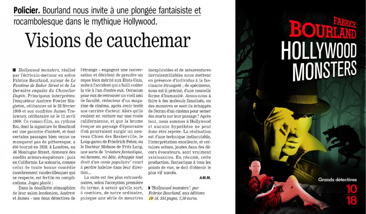 L’article à droite est paru dans Le Soir, édition du week-end. Il est signé Jean-Claude Vantroyen, critique littéraire et responsable du supplément « Livres » du grand quotidien belge. L’article ci-dessous a été publié dans La Marseillaise. Mais on a aussi causé d’Hollywood Monsters dans Le Monde, Le Magazine littéraire, Télérama, Livre-Hebdo, Biba, Point de vue… Pour accéder à tous ces articles, se reporter à la page « Presse écrite et Internet ».